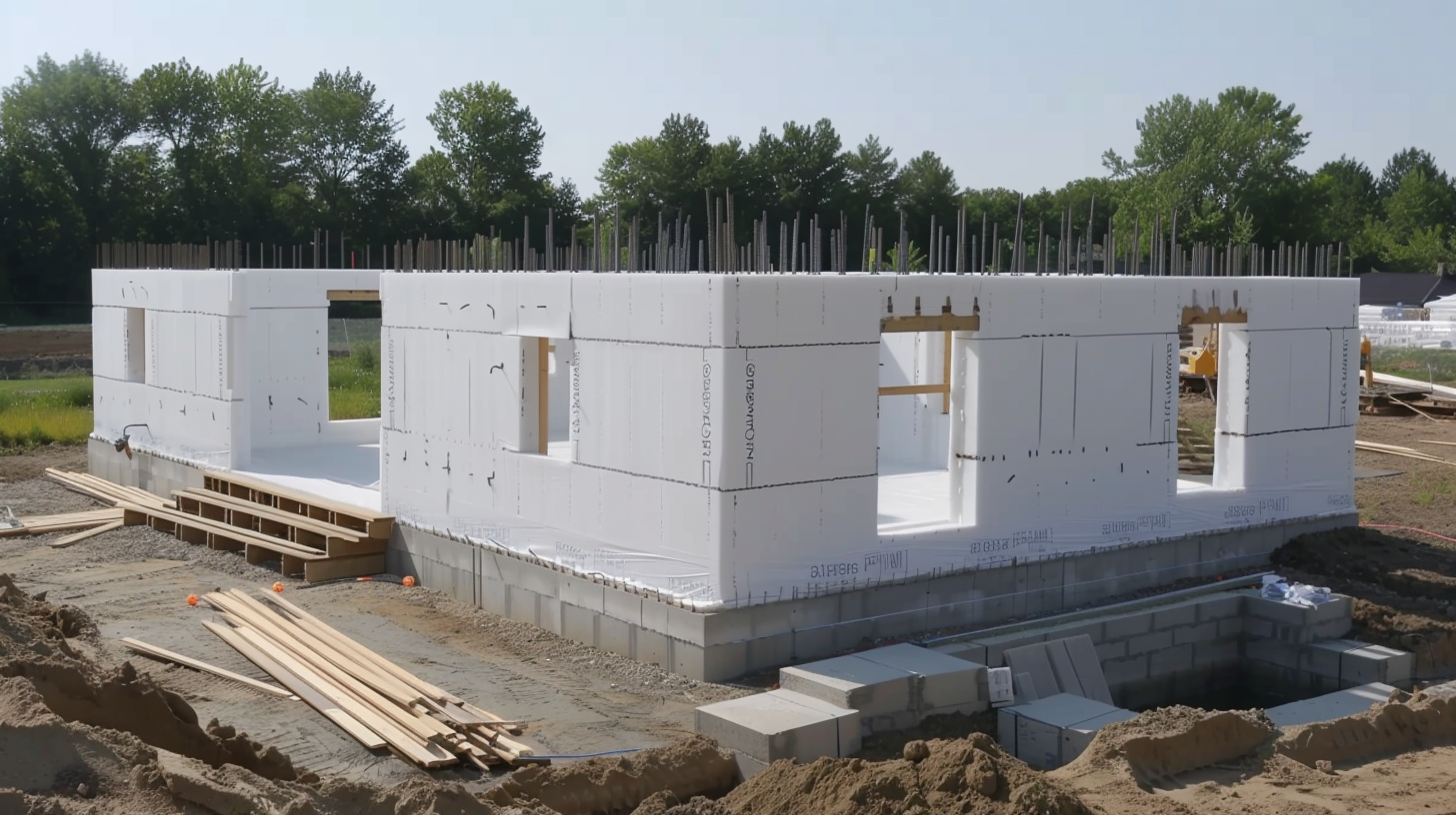 O cofragem isolante de poliestireno expandido (ICF) é uma tecnologia avançada que consiste na empilhagem de blocos de poliestireno, que são posteriormente preenchidos com concreto armado, criando uma estrutura altamente isolante e resistente.